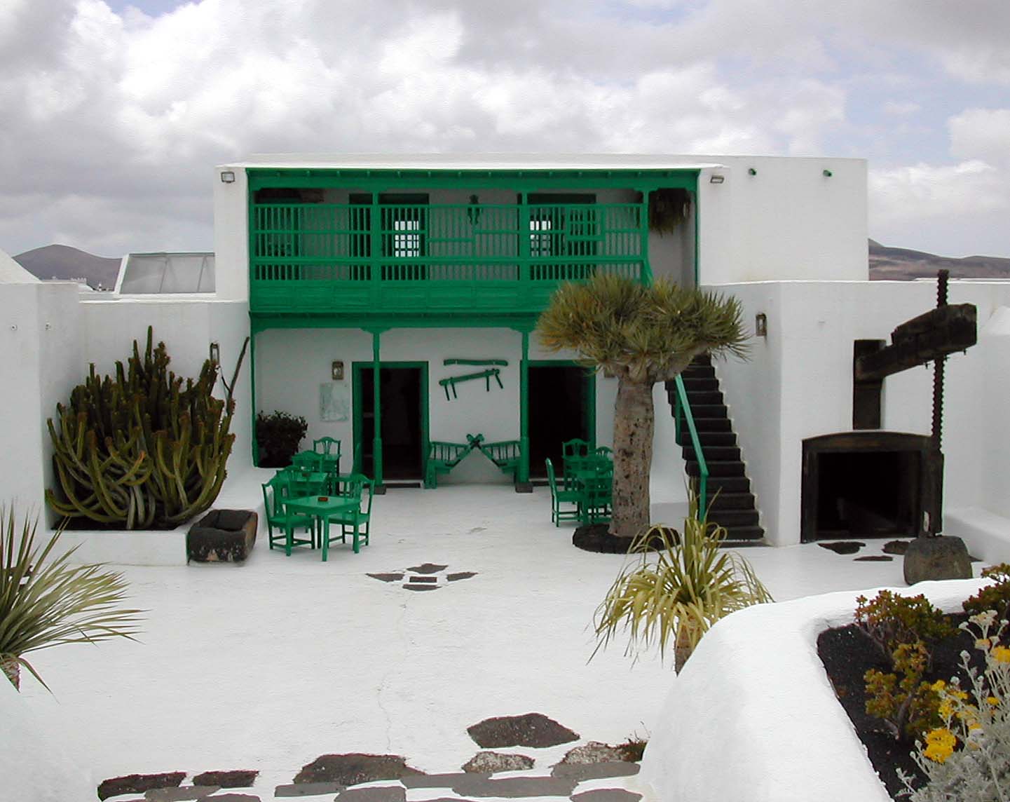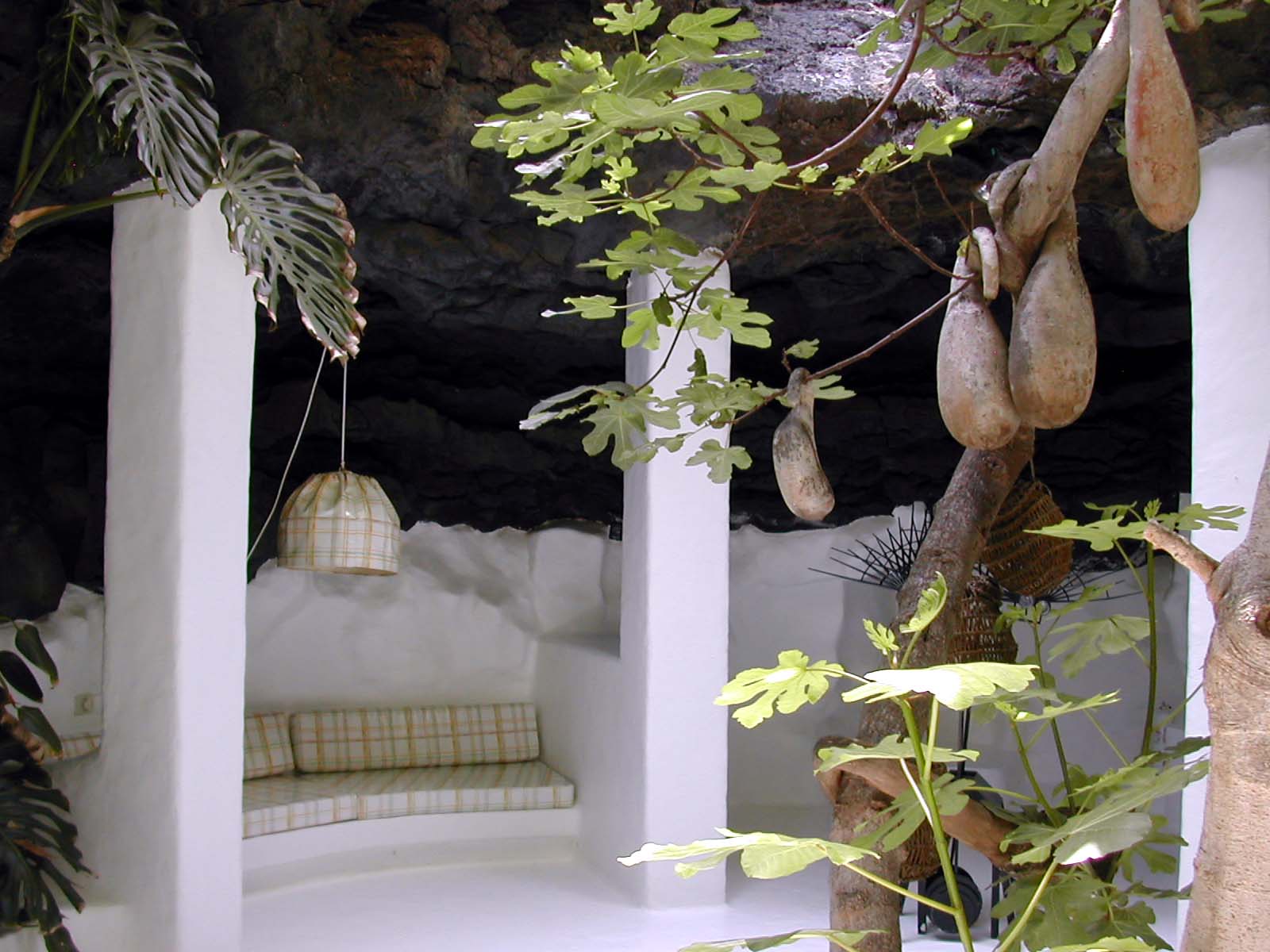 Er baute sein Haus mit dem unter anderen Roten und Weißen Salon in unterirdischen Lavablasen um einen Feigenbaum herum