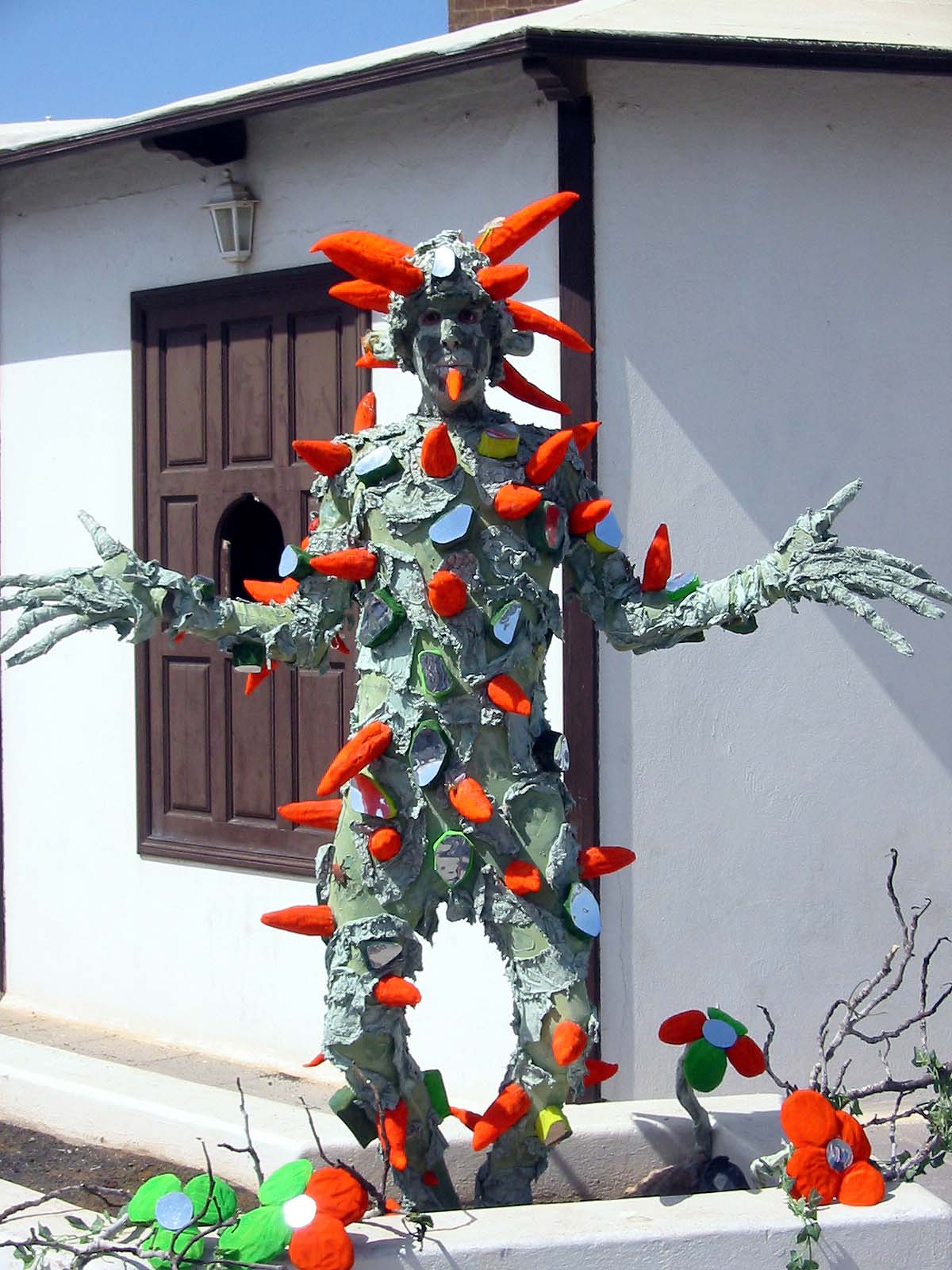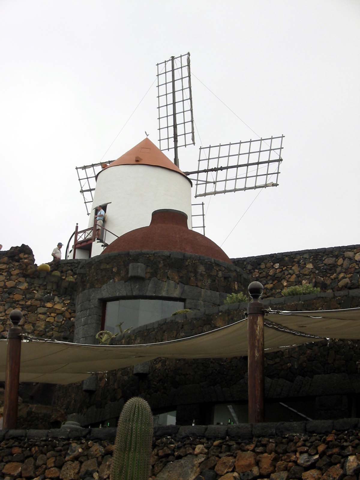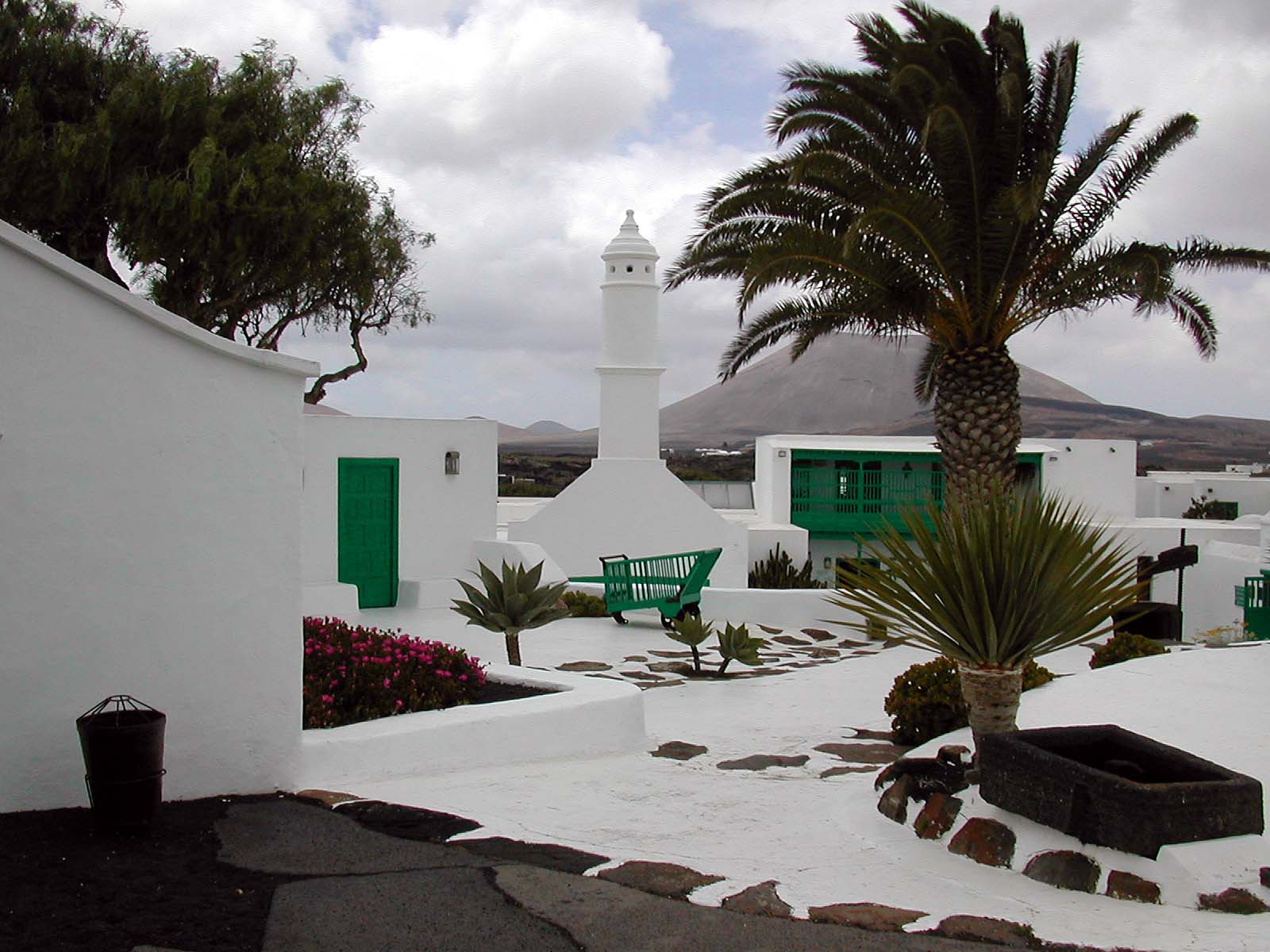Das Museum und die Häuser umgeben genau im geographischen Mittelpunkt das 15m hohe Wahrzeichen Lanzarotes, das Monumento al Campesino