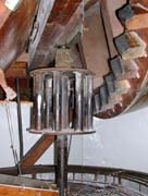 Von der obersten Terrasse geht es über eine Wendeltreppe vorbei an einem dekorativen Kunstwerk aus Glas und Metall hinauf zur Windmühle - hier das Mahlwerk
