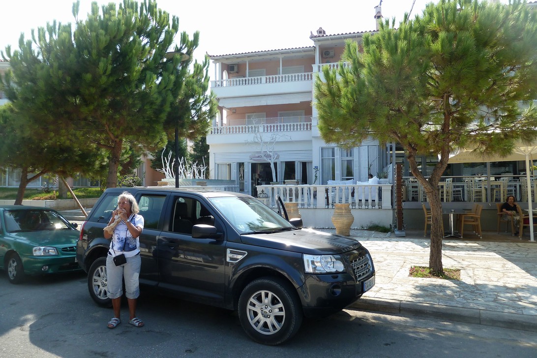 Wir finden wieder den tollen Strand und diesmal wird der Name uns sicher in Erinnerung bleiben, da wir eine Nacht im Akrata-Beach-Hotel verbracht haben, da die Fähre erst am 05.09. zurück nach Venedig fuhr. Das tolle Café mit dem Namen So Withe hat uns super gefallen.