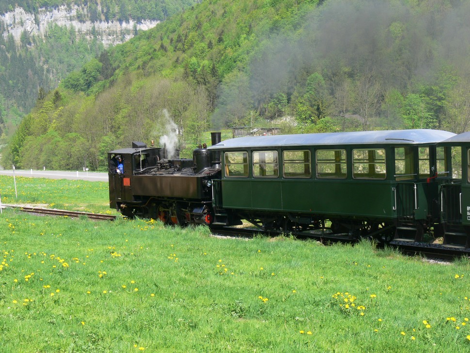 Auf dem Weg nach Au sage ich noch zu Waltraud, schade daß das Wälderbähnle nicht mehr existiert. 5 Minuten darauf pfiff es plötzlich und die restaurierte Museumsbahn machte ihre Jungfernfahrt, wirklich toll.