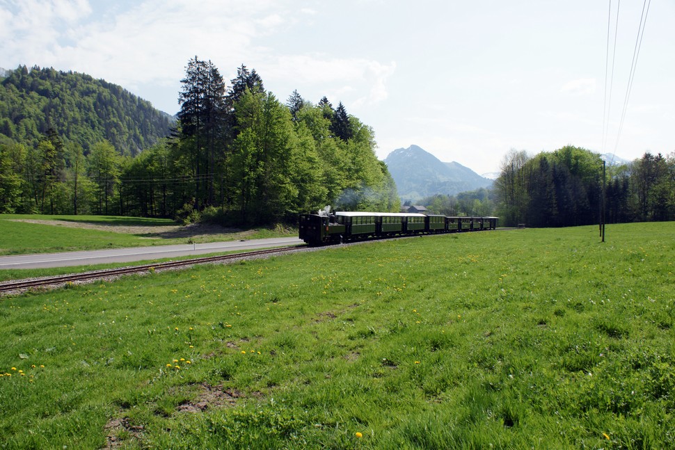 Auf dem Weg nach Au sage ich noch zu Waltraud, schade daß das Wälderbähnle nicht mehr existiert. 5 Minuten darauf pfiff es plötzlich und die restaurierte Museumsbahn machte ihre Jungfernfahrt, wirklich toll.
