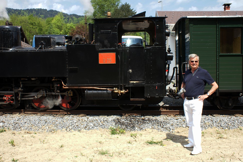 Auf dem Weg nach Au sage ich noch zu Waltraud, schade daß das Wälderbähnle nicht mehr existiert. 5 Minuten darauf pfiff es plötzlich und die restaurierte Museumsbahn machte ihre Jungfernfahrt, wirklich toll.