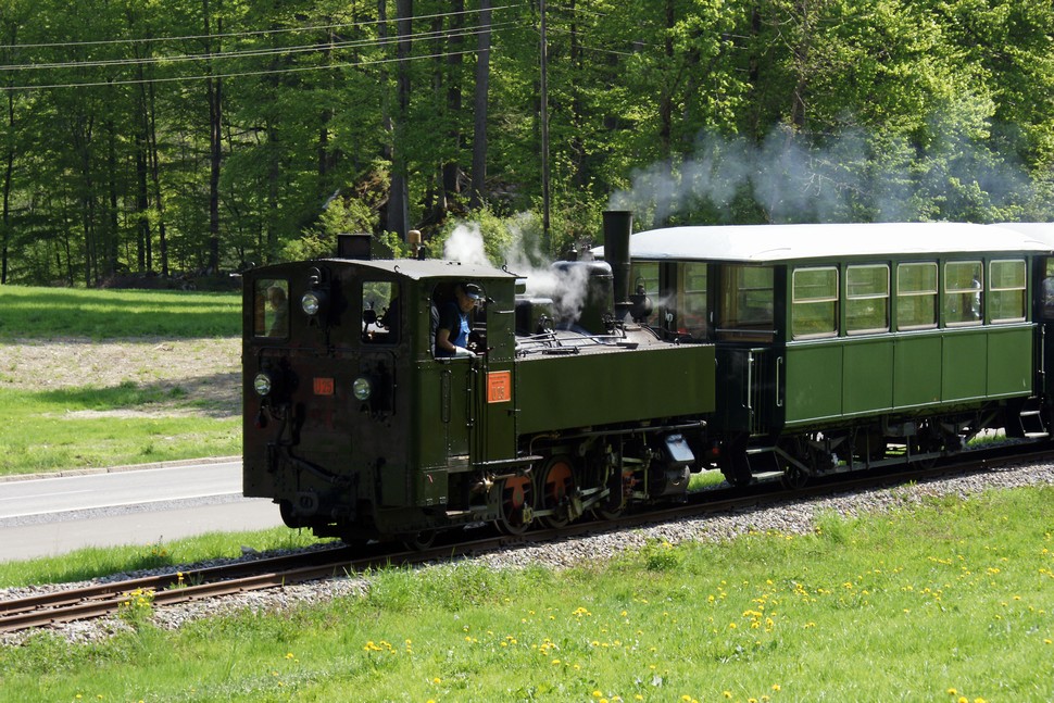 Auf dem Weg nach Au sage ich noch zu Waltraud, schade daß das Wälderbähnle nicht mehr existiert. 5 Minuten darauf pfiff es plötzlich und die restaurierte Museumsbahn machte ihre Jungfernfahrt, wirklich toll.