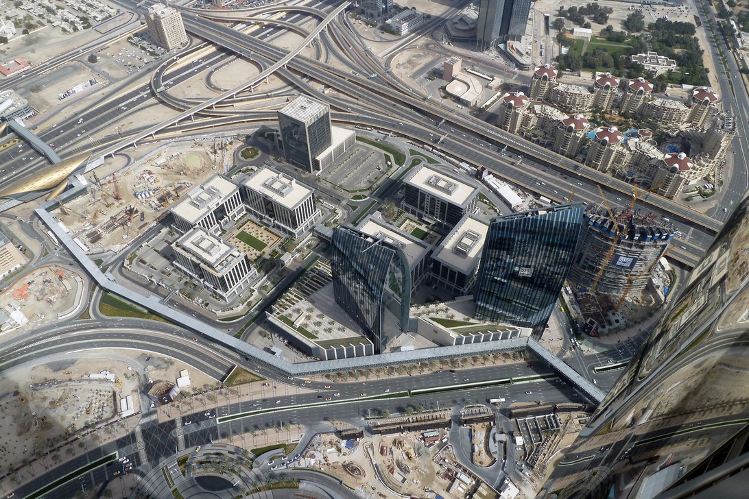 Das höchste Gebäude der Welt ist der Burj Khalifa mit 828m. Die Aussichtsplattform im 124. Stock in 452m Höhe erreicht man mit Liften in gerade mal einer Minute.