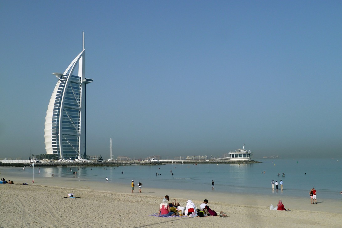 Bei unserer erneuten Ankunft in Dubai ist das Wetter etwas klarer. Auf unserer Stadtrundfahrt kommen wir zu einem der Wahrzeichen - Burj al Arab, das teuerste 7********-Hotel der Welt.