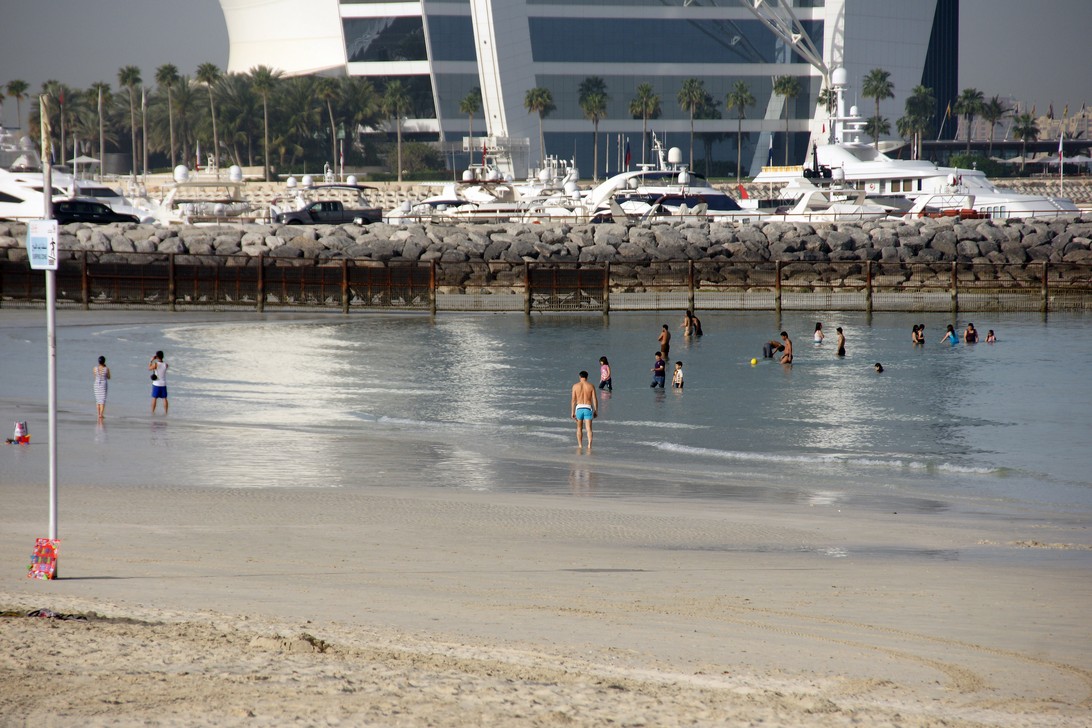 Bei unserer erneuten Ankunft in Dubai ist das Wetter etwas klarer. Auf unserer Stadtrundfahrt kommen wir zu einem der Wahrzeichen - Burj al Arab, das teuerste 7********-Hotel der Welt. Das höchste Gebäude der Welt ist der Burj Khalifa mit 828m. Die Aussichtsplattform im 124. Stock in 452m Höhe erreicht man mit Liften in gerade mal einer Minute. |
