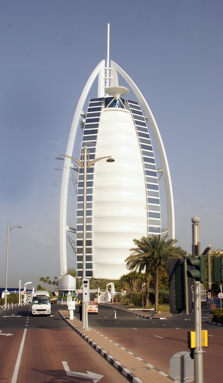 Bei unserer erneuten Ankunft in Dubai ist das Wetter etwas klarer. Auf unserer Stadtrundfahrt kommen wir zu einem der Wahrzeichen - Burj al Arab, das teuerste 7********-Hotel der Welt.