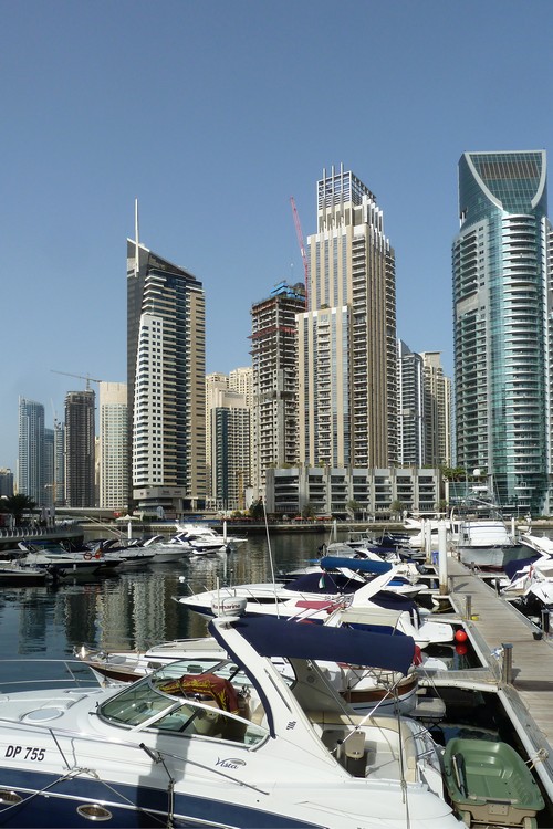 Bei unserer erneuten Ankunft in Dubai ist das Wetter etwas klarer. Auf unserer Stadtrundfahrt kommen wir zu einem der Wahrzeichen - Burj al Arab, das teuerste 7********-Hotel der Welt. Das höchste Gebäude der Welt ist der Burj Khalifa mit 828m. Die Aussichtsplattform im 124. Stock in 452m Höhe erreicht man mit Liften in gerade mal einer Minute. |