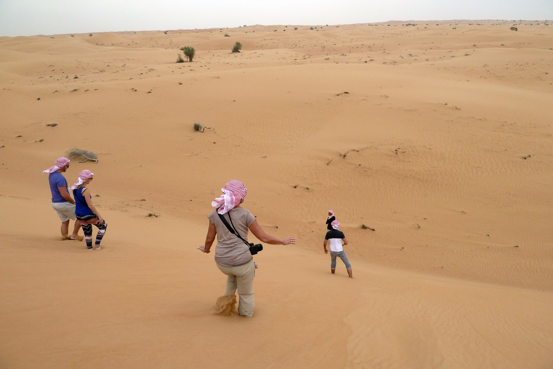 Unser Hotel 33 Stockwerke hoch liegt wie so viele direkt am weißen Strand, ganz nah bei der künstlich aufgeschütteten Palminsel. Ein abendlicher Spaziergang zwischen den Hochhäusern und am nächsten Tag ein Ausflug in die Wüste stehen auf dem Programm und dazwischen Baden im warmen persischen Golf.