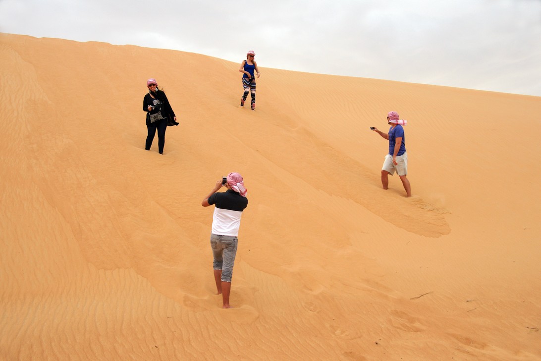 Unser Hotel 33 Stockwerke hoch liegt wie so viele direkt am weißen Strand, ganz nah bei der künstlich aufgeschütteten Palminsel. Ein abendlicher Spaziergang zwischen den Hochhäusern und am nächsten Tag ein Ausflug in die Wüste stehen auf dem Programm und dazwischen Baden im warmen persischen Golf.