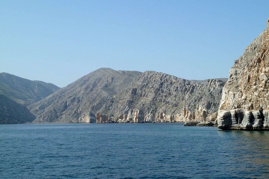 Wir erkunden mit einer Dhau die Fjorde von Oman und besuchen die Telegrafeninsel. Wir werden von neugierigen Delphinen begleitet, anschließend machen wir Pause für ein angenehmes Bad. Die Gewässer sind dort sehr fischreich. Einzelne abgelegene Dörfer haben wir gesehen, die trotzdem mit elektrischer Energie, Trinkwasser, Fernsehen und Internet ausgestattet sind.