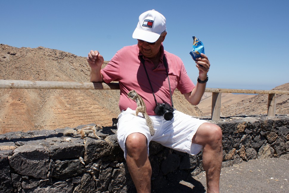 Waltraud hat extra von zu Hause ungesalzene Erdnüsse mitgebracht. Gleich am ersten Tag auf dem Ausflug in die Berge vom Airport kommend haben wir sie besucht und uns köstlich amüsiert. Sie krabbelten zum Teil auf uns herum und waren gierig auf das Futter. Zum Schluss kamen wir nochmal dahin und verfütterten den Rest.