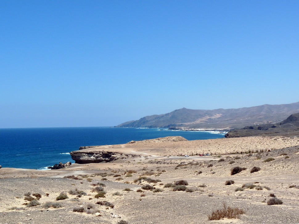 Wir fahren in die Berge und wollen zum Wrack des versunkenen Kreuzfahrtschiffs, werden aber von einem Soldaten mit MG kurz vor dem Ziel gestoppt (Manöver an einem Sonntag). La Pared und Cofete waren aber eine Alternative, leider kamen wir nicht direkt an die Playa Barlovento.