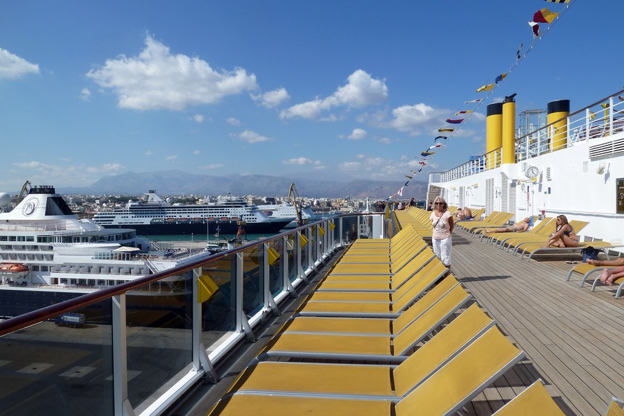 Inspiriert vom Baustil antiker Patriziervillen der italienischen Halbinsel, repräsentiert die Costa Mediterranea italienische Eleganz mit viel Liebe zum Detail und reicher Kunst. Einmalig und spektakulär fällt hier das 'Ristorante degli Argentieri' positiv ins Auge, das mit 139 Kunstwerken aus Silber verziert ist. Über tausend Kabinen beherbergen die Gäste und in 4 Restaurants wird den ganzen Tag gegessen und der Abend klingt dann aus in einer der 12 Bars oder im Theater. Unsere Außenkabine hat die Nummer 1210.