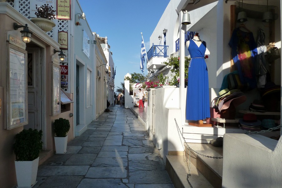Wir sind glücklicherweise wieder die ersten, die mit dem Bus in Oía ankommen. Die Gassen sind noch leer, die Geschäfte werden gerade aufgesperrt, bevor der große Rummel losgeht. Ein kleiner Nachtel besteht, die Sonne steht noch tief, deswegen können wir erst mal nur in Richtung Westen fotografieren. Gebäude und Landschaft sind immer wieder faszinierend.
