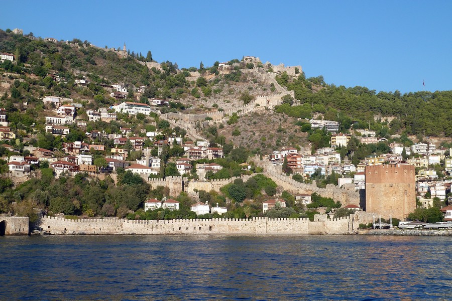 Früh am Morgen legen wir in Alanya an und kommen gerade rechtzeitig, als eine türkische Marineeinheit die Flaggen am Mast hisst und ausläuft. Wir besuchen in Aspergos kurz vor Antalya das noch gut erhaltene Römische Theater. Vor allem der Bühnenbereich ist gigantisch und perfekt rekonstruiert. Es folgt das Antike Perge, ursprünglich von den Hethitern um 1500 v.Ch besiedelt ehe die Griechen kamen. Später geriet Perge dann unter die Römische Herrschaft. Den Abschluss bildet Side mit dem Theater und den Ausgrabungen in der Altstadt.