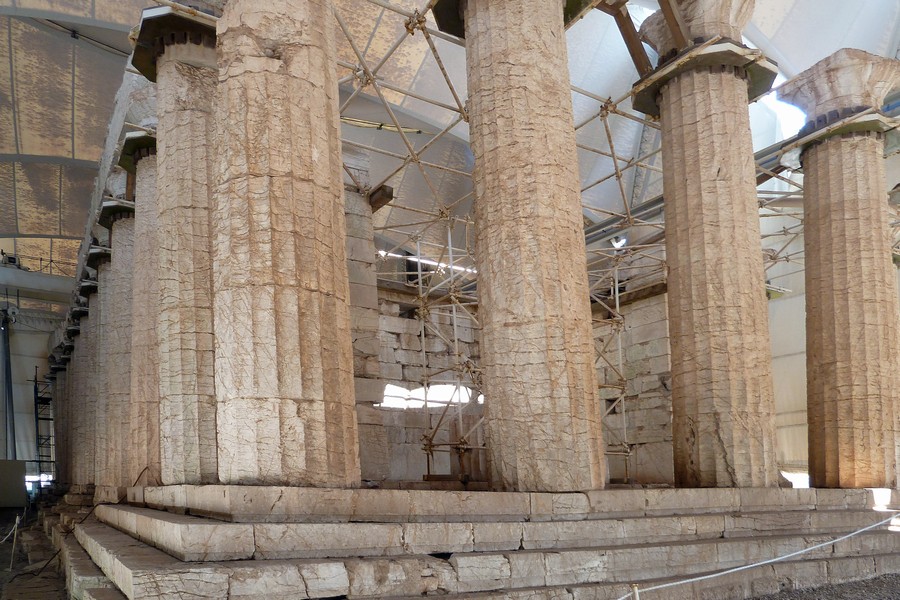Ein zweiter Parthenon aber In Plastik eingepackt und ein toller Strand in der Abendsonne