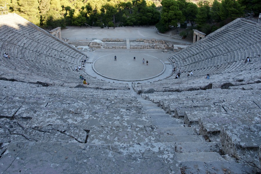 Auf dem Rückweg von Piräus haben wir uns vorgenommen, Epidaurus zu besuchen. Frühe Ankunft der Fähre garantiert auch wenig Besucher in Epidaurus. Die Anfahrt gegen die tiefstehende Sonne war alledings schwierig. Doch wir waren begeistert von der Akustik, rezitierten docj junge Studenten.