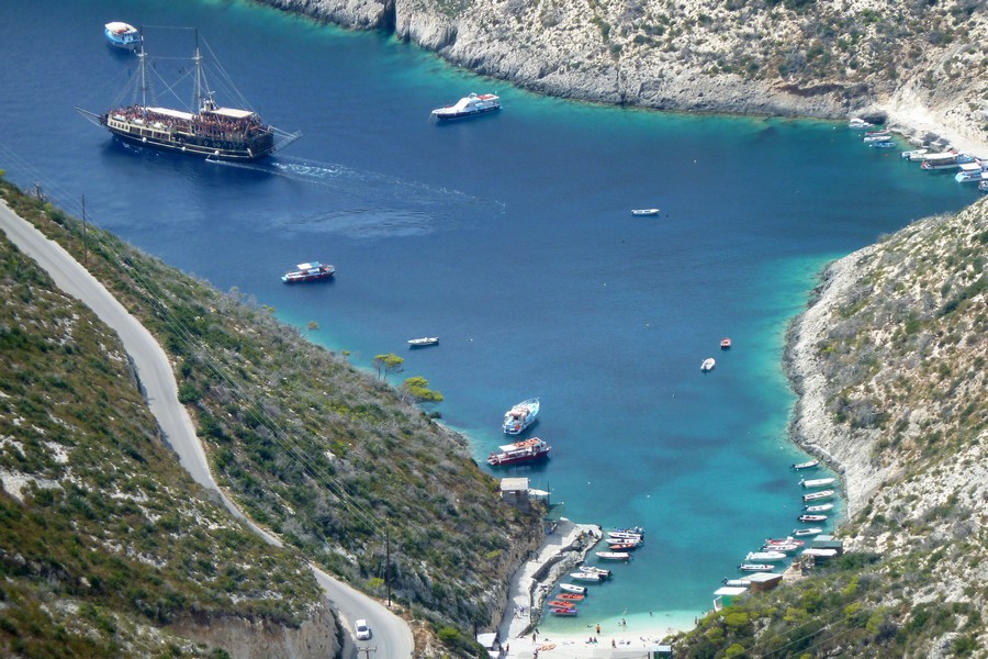 Wir genießen einen Tag das klare Wasser mit den einzigartigen Farben und Gesteinsformationen und fahren mit der Fähre inklusive Landrover nach Zakynthos, so verlieren wir keine Zeit. Zum Schiffswrack wollen wir. Es geht die ganze Südseite der Insel entlang, dann am Ende quer durch Zakynthos und zum Schluss die Berge hinunter zu einem kleinen Hafen. Jetzt gehts mit der Zakynthos zum Schiffswrack.