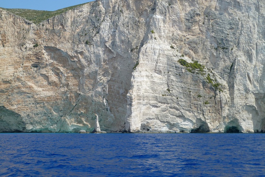 Wir genießen einen Tag das klare Wasser mit den einzigartigen Farben und Gesteinsformationen und fahren mit der Fähre inklusive Landrover nach Zakynthos, so verlieren wir keine Zeit. Zum Schiffswrack wollen wir. Es geht die ganze Südseite der Insel entlang, dann am Ende quer durch Zakynthos und zum Schluss die Berge hinunter zu einem kleinen Hafen. Jetzt gehts mit der Zakynthos zum Schiffswrack.