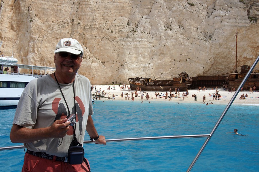 Wir genießen einen Tag das klare Wasser mit den einzigartigen Farben und Gesteinsformationen und fahren mit der Fähre inklusive Landrover nach Zakynthos, so verlieren wir keine Zeit. Zum Schiffswrack wollen wir. Es geht die ganze Südseite der Insel entlang, dann am Ende quer durch Zakynthos und zum Schluss die Berge hinunter zu einem kleinen Hafen. Jetzt gehts mit der Zakynthos zum Schiffswrack.