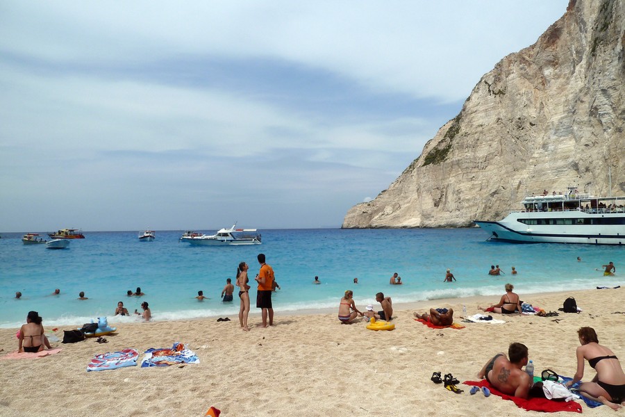 Wir genießen einen Tag das klare Wasser mit den einzigartigen Farben und Gesteinsformationen und fahren mit der Fähre inklusive Landrover nach Zakynthos, so verlieren wir keine Zeit. Zum Schiffswrack wollen wir. Es geht die ganze Südseite der Insel entlang, dann am Ende quer durch Zakynthos und zum Schluss die Berge hinunter zu einem kleinen Hafen. Jetzt gehts mit der Zakynthos zum Schiffswrack.