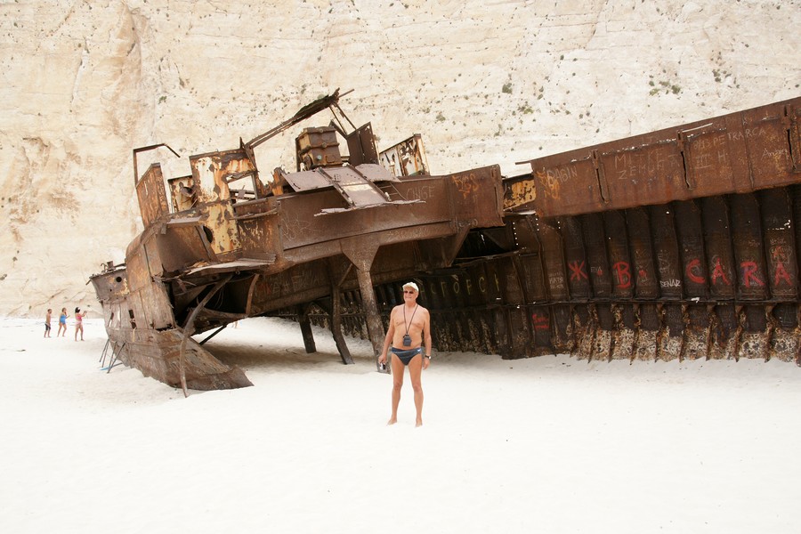 Wir genießen einen Tag das klare Wasser mit den einzigartigen Farben und Gesteinsformationen und fahren mit der Fähre inklusive Landrover nach Zakynthos, so verlieren wir keine Zeit. Zum Schiffswrack wollen wir. Es geht die ganze Südseite der Insel entlang, dann am Ende quer durch Zakynthos und zum Schluss die Berge hinunter zu einem kleinen Hafen. Jetzt gehts mit der Zakynthos zum Schiffswrack.