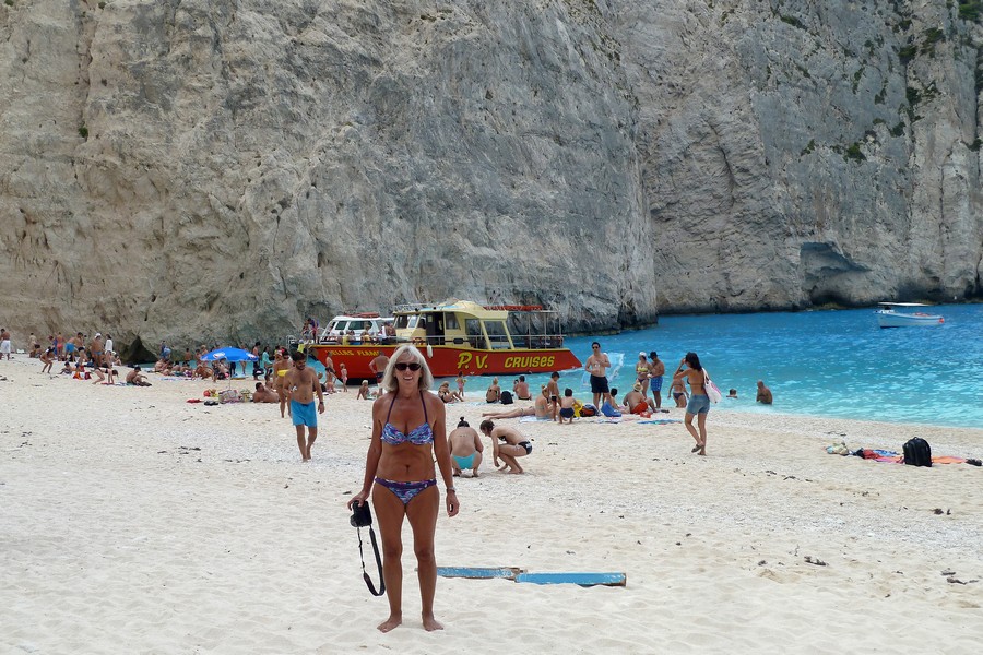 Wir genießen einen Tag das klare Wasser mit den einzigartigen Farben und Gesteinsformationen und fahren mit der Fähre inklusive Landrover nach Zakynthos, so verlieren wir keine Zeit. Zum Schiffswrack wollen wir. Es geht die ganze Südseite der Insel entlang, dann am Ende quer durch Zakynthos und zum Schluss die Berge hinunter zu einem kleinen Hafen. Jetzt gehts mit der Zakynthos zum Schiffswrack. |