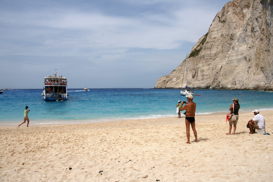 Wir genießen einen Tag das klare Wasser mit den einzigartigen Farben und Gesteinsformationen und fahren mit der Fähre inklusive Landrover nach Zakynthos, so verlieren wir keine Zeit. Zum Schiffswrack wollen wir. Es geht die ganze Südseite der Insel entlang, dann am Ende quer durch Zakynthos und zum Schluss die Berge hinunter zu einem kleinen Hafen. Jetzt gehts mit der Zakynthos zum Schiffswrack. |