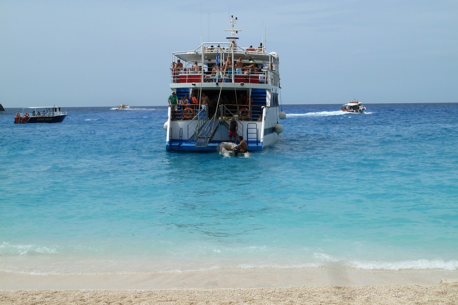 Wir genießen einen Tag das klare Wasser mit den einzigartigen Farben und Gesteinsformationen und fahren mit der Fähre inklusive Landrover nach Zakynthos, so verlieren wir keine Zeit. Zum Schiffswrack wollen wir. Es geht die ganze Südseite der Insel entlang, dann am Ende quer durch Zakynthos und zum Schluss die Berge hinunter zu einem kleinen Hafen. Jetzt gehts mit der Zakynthos zum Schiffswrack.