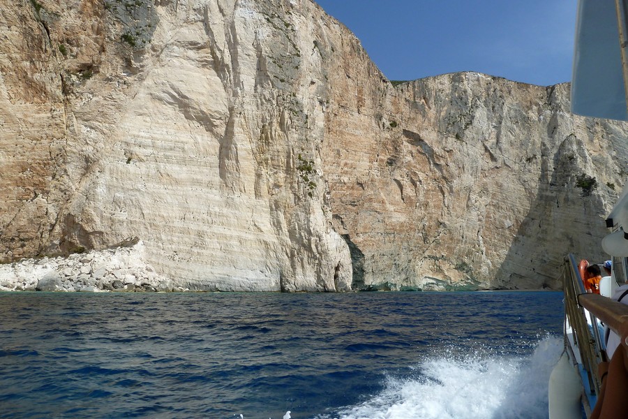 Wir genießen einen Tag das klare Wasser mit den einzigartigen Farben und Gesteinsformationen und fahren mit der Fähre inklusive Landrover nach Zakynthos, so verlieren wir keine Zeit. Zum Schiffswrack wollen wir. Es geht die ganze Südseite der Insel entlang, dann am Ende quer durch Zakynthos und zum Schluss die Berge hinunter zu einem kleinen Hafen. Jetzt gehts mit der Zakynthos zum Schiffswrack.