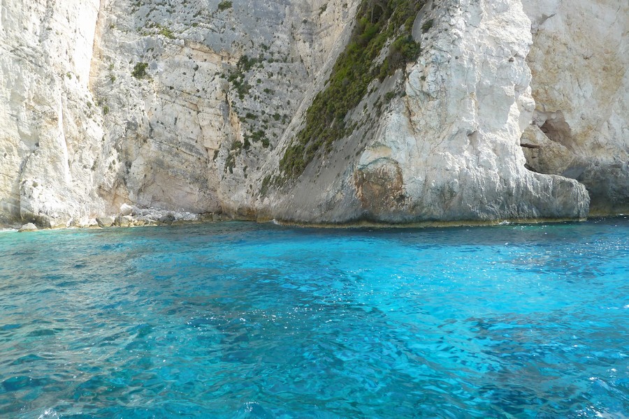 Wir genießen einen Tag das klare Wasser mit den einzigartigen Farben und Gesteinsformationen und fahren mit der Fähre inklusive Landrover nach Zakynthos, so verlieren wir keine Zeit. Zum Schiffswrack wollen wir. Es geht die ganze Südseite der Insel entlang, dann am Ende quer durch Zakynthos und zum Schluss die Berge hinunter zu einem kleinen Hafen. Jetzt gehts mit der Zakynthos zum Schiffswrack. |