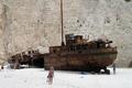 Wir genießen einen Tag das klare Wasser mit den einzigartigen Farben und Gesteinsformationen und fahren mit der Fähre inklusive Landrover nach Zakynthos, so verlieren wir keine Zeit. Zum Schiffswrack wollen wir. Es geht die ganze Südseite der Insel entlang, dann am Ende quer durch Zakynthos und zum Schluss die Berge hinunter zu einem kleinen Hafen. Jetzt gehts mit der Zakynthos zum Schiffswrack.