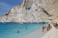 Wir genießen einen Tag das klare Wasser mit den einzigartigen Farben und Gesteinsformationen und fahren mit der Fähre inklusive Landrover nach Zakynthos, so verlieren wir keine Zeit. Zum Schiffswrack wollen wir. Es geht die ganze Südseite der Insel entlang, dann am Ende quer durch Zakynthos und zum Schluss die Berge hinunter zu einem kleinen Hafen. Jetzt gehts mit der Zakynthos zum Schiffswrack.