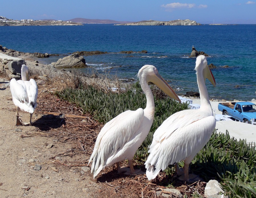 Mykonos heißt Urlaub, die Insel ist total vom Fremdenverkehr eingenommen. Ihre Bewohner haben die Vorzügr ihrer "Sonnen,. Wind- und Meer-Insel" geschickt zu nutzen gewußt. Ihr Eiland ist fast zum Synonym für Urlaub in Griechenland geworden. Mehrmals schlenderten wir in Mýkonos Stadt durch die Hafenpromenade vorbei an der Paraportianikirche, an Klein Venedig, Alefkándra zum Windmühlenhügel und begegnen unseren Freunden, den Pelikanen. Unser Domizil war das Designer-Hotel Cavo Tagoo. Zum Baden gings nach Àgios Sóstis.