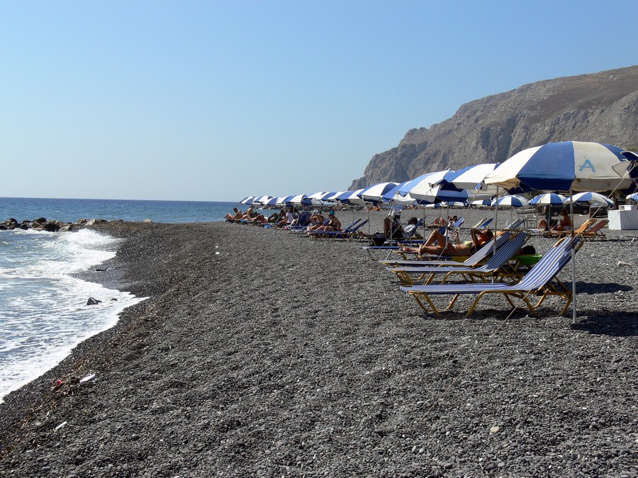 Pýrgos war die Hauptstadt zu Zeiten der Piratengefahr, nicht zuletzt wegen des grandiosen Ausblicks über die ganze Insel vom Kástro aus. Es wird auch als Penthouse der Insel bezeichnet, extrem verwinkelt, mit Treppen, Gassen und Kirchen. In Vlicháda an der südlichsten Spitze Santorínis waren wir meist baden, gewohnt haben wir im Hotel Zéphyros in Kamári.