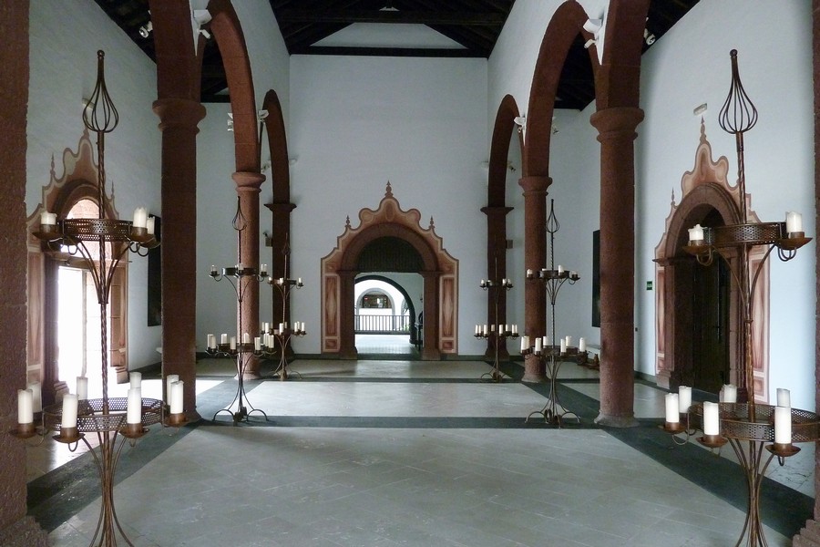 Diemal wohnen wir im 2001 erbauten Hotel Volcán, das architektonisch imposant als Dorf konzipiert wurde, aber inzwischen schon etwas renovierungsbedürftig ist. Wir kommen am Eingang durch eine Kirche mit Weihrauch in der Luft und gregorianischen Chorälen im Ohr, um dann anschließend im vulkanähnlichen Hauptgebäude im fünften Stock zur Rezeption zu gelangen. Der Empfang war perfekt, die Koffer wurden aus unserem PKW geholt und aufs Zimmer gebracht.