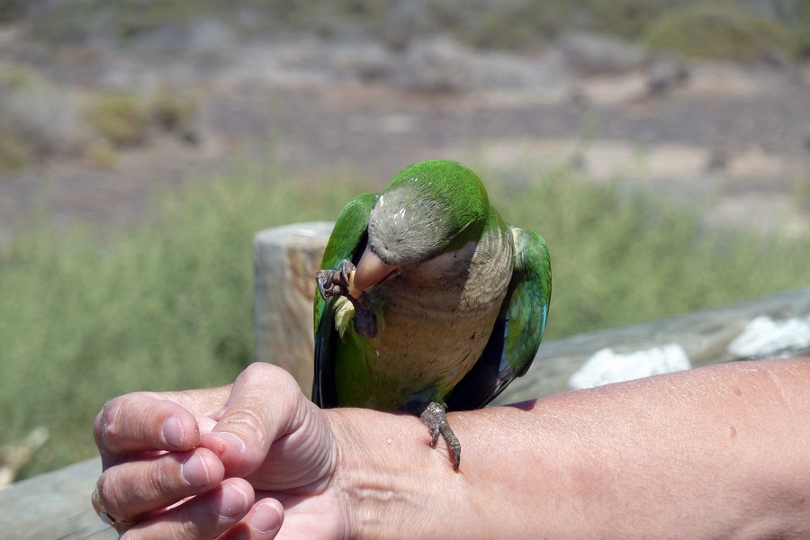An der Costa Calma haben wir das letzt Mal in einem Bungalow gewohnt und waren dort mehrmals am Strand etwas weiter Richtung Jandia. Am Kreisel geht es ab zum Windsurfing und Kite-Center. Aber zuviel Wind, der Sonnenschirm war nicht zu bändigen, als baden wir an der Playa Jandia, wo wir nicht nur Atlashörnchen finden, sondern auch viele grüne sehr zutrauliche Papageien. Ein tolles Erlebnis,