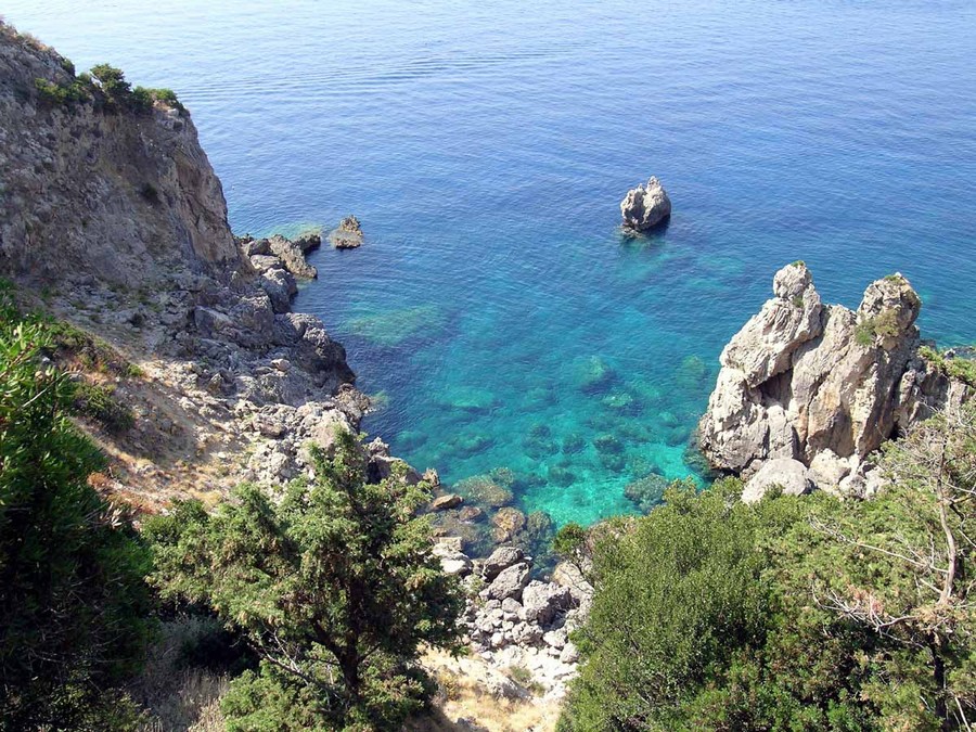 Mehrmals fahren wir über Paleokastritsa in den Westen um die wunderschönen Buchten und Ausblicke zu genießen. Nichts ist schöner, als einzige in einer Bucht ins in allen Blautönen schimmernde Meer einzutauchen, wie zum Beispiel an der Castelli-Bay.