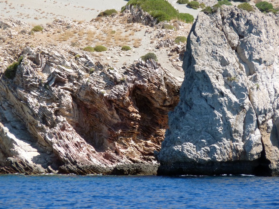 Mit dem Auto gehts zum Hafen nach Agia Galini, von dort mit dem Boot Argonautes an der Küste entlang zum Palmenstrand Preveli.Die letzte halbe Stunde wurde das Meer ganz schön unruhig und wir wurden naß gespritz tund mußten nach innen flüchten. Am Beach angekommen wandern wir entlang des Flusses durch Palmenwälder,über Stock und Stein, klettern über Felsen bis die hohen Berge beginnen.