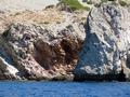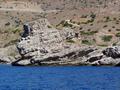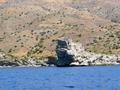Mit dem Auto gehts zum Hafen nach Agia Galini, von dort mit dem Boot Argonautes an der Küste entlang zum Palmenstrand Preveli.Die letzte halbe Stunde wurde das Meer ganz schön unruhig und wir wurden naß gespritz tund mußten nach innen flüchten. Am Beach angekommen wandern wir entlang des Flusses durch Palmenwälder,über Stock und Stein, klettern über Felsen bis die hohen Berge beginnen.