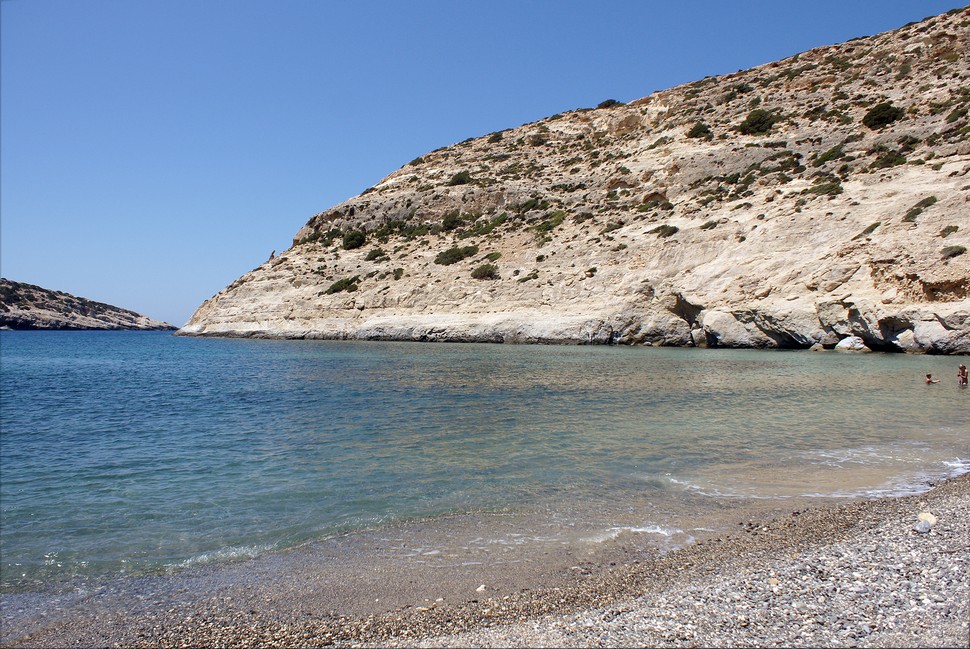 Heute fahren wir über Moni Odigitrias, wo wir den Mönchen eine CD mit unseren Bildern vom vergangenen Jahr übergeben und von denen wir wie jedes mal freundlich empfangen werden, auf Schotterstraßen vorbei an vielen Ziegen und Schafen Richtung Martsalo vorbei am Berg Kefali zur wunderschönen Bucht Vathi. Gewaltige Kreidefelsen säumen die Schotterstrasse.