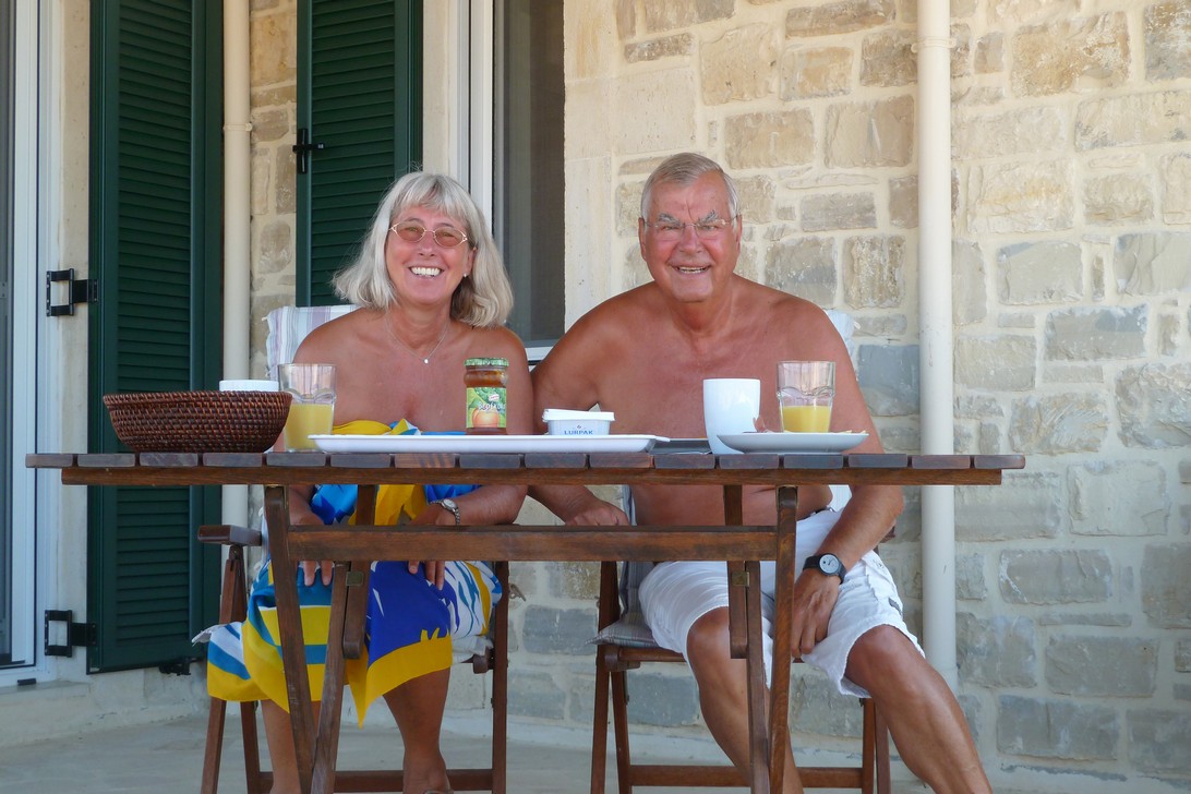 Der Tag erwacht in Kamilari, baden im Pool, frühstücken auf der Terrasse, ein Badetag am Komosstrand, Nachmittags bei Stecki zum Internetsurf, abends in der Taverne zum Essen und Ausklang beim Bilderrunterladen, Zigarre und Rotwein und vor dem Schlafen noch einmal in den Pool.
