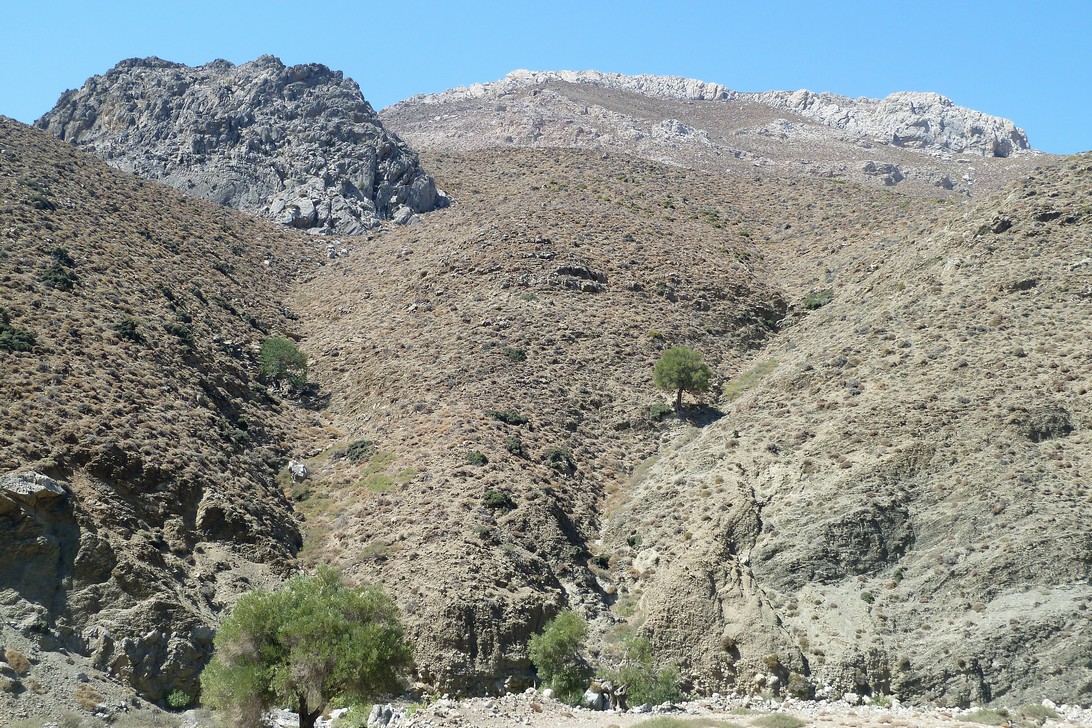 Auf Schotterstrassen geht es über das Asterousia-Gebige durch die wilde Schlucht an den Strand nach Tripiti, von dort weiter nach Lendas und nunmehr auf Asphaltstraßen zurück über Krotos, Miramu nach Kamilari.