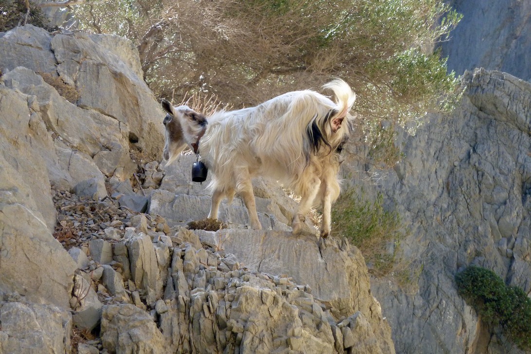 Auf Schotterstrassen geht es über das Asterousia-Gebige durch die wilde Schlucht an den Strand nach Tripiti, von dort weiter nach Lendas und nunmehr auf Asphaltstraßen zurück über Krotos, Miramu nach Kamilari.