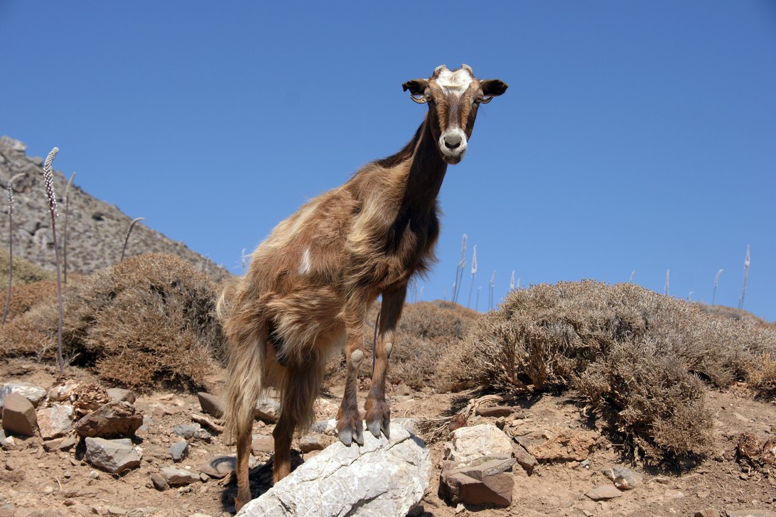 Auf Schotterstrassen geht es über das Asterousia-Gebige durch die wilde Schlucht an den Strand nach Tripiti, von dort weiter nach Lendas und nunmehr auf Asphaltstraßen zurück über Krotos, Miramu nach Kamilari.