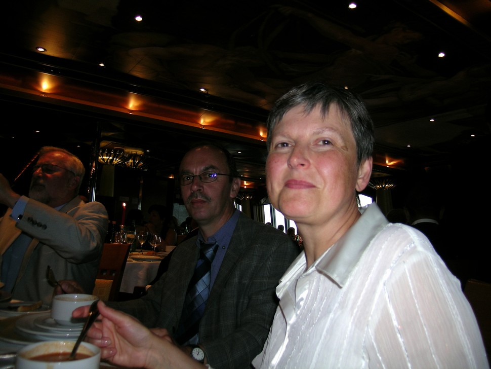 Unser Kreuzfahrtschiff diesmal die Costa Fortuna hat eine Länge von 273m und eine Breite von 36m. Sie besteht aus 17 Decks, davon sind 13 Gästedecks, und fährt maximal 24 Knoten. 3 große Bordrestaurants versorgen 3000 Passagiere. 11 Bars mit Livemusik, sowie Casino, Theater, Internetcafé und 1.300 qm Fitnessbereich lassen keine Langeweile aufkommen. Wir trafen in der Zigarren-und Cognac-Bar den Comandante Anelito Montesarchio und machten daraus gleich einen Fototermin.
