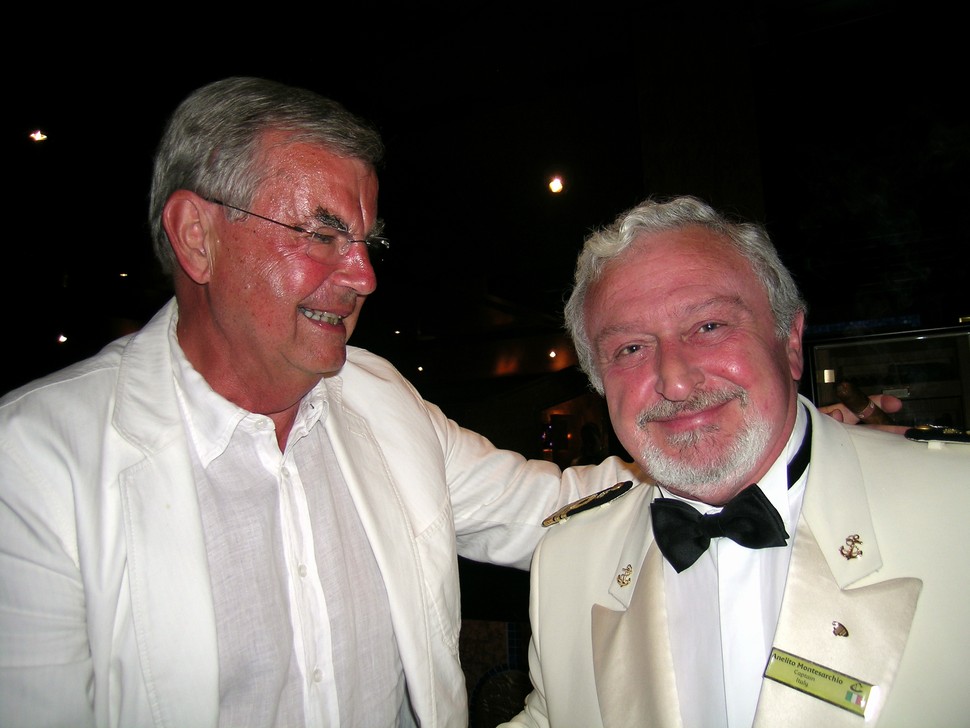 Unser Kreuzfahrtschiff diesmal die Costa Fortuna hat eine Länge von 273m und eine Breite von 36m. Sie besteht aus 17 Decks, davon sind 13 Gästedecks, und fährt maximal 24 Knoten. 3 große Bordrestaurants versorgen 3000 Passagiere. 11 Bars mit Livemusik, sowie Casino, Theater, Internetcafé und 1.300 qm Fitnessbereich lassen keine Langeweile aufkommen. Wir trafen in der Zigarren-und Cognac-Bar den Comandante Anelito Montesarchio und machten daraus gleich einen Fototermin.