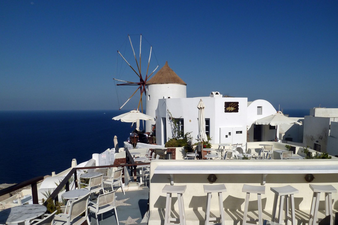 Hoch über der Ägäis an den Kraterrand geschmiegt sind die Orte für alle ein Bilderbuch-Fotomodel. Ein Motiv überstrahlt das nächste. Wir können uns immer noch nicht sattsehen, obwohl das bereits unser 5ter Besuch ist.